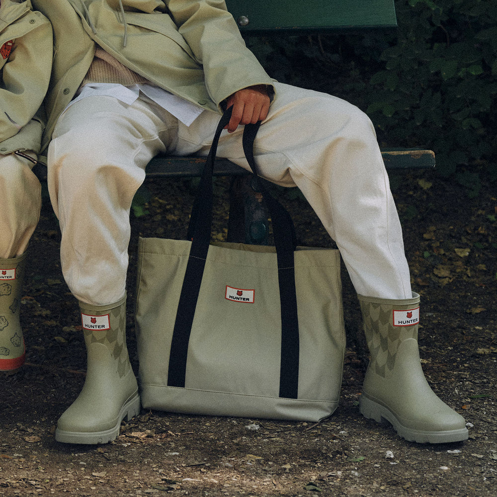 De Maison Kitsuné x Hunter Large Tote Bag is ontworpen met dagelijkse functionaliteit en moderne stijl in gedachten en combineert Hunter's praktische vakmanschap met de eigentijdse details van Maison Kitsuné. Deze ruime tas is gemaakt van waterbestendig polyester met een gladde PU-coating en is lichtgewicht maar toch duurzaam, ideaal voor woon-werkverkeer, reizen of dagelijks gebruik.