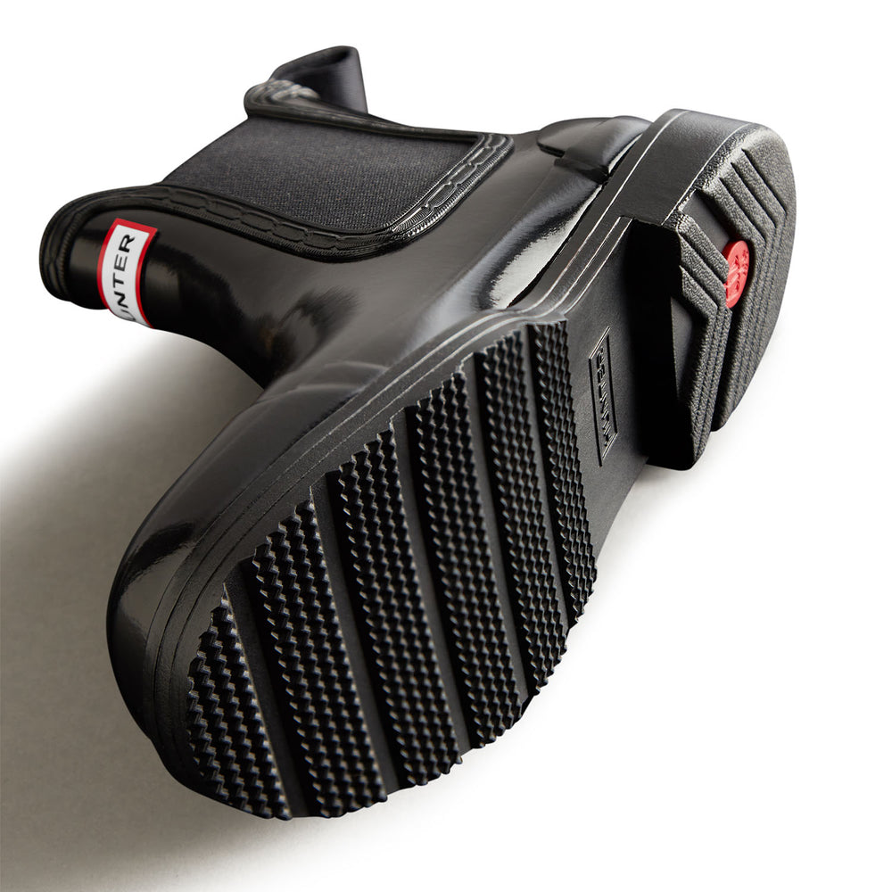 Deze waterbestendige chelsea boots zijn met de hand vervaardigd volgens strenge normen om bossen, dieren en gemeenschappen die ervan afhankelijk zijn, te beschermen. De Commando Chelsea Boot, gemaakt van natuurlijk FSC®-gecertificeerd en veganistisch rubber, is een icoon binnen onze Originals-collectie. Met behoud van alle geliefde kenmerken van de originele chelsea boots, zoals het elastische inzetstuk en de gripvaste Hunter profielzool, heeft dit nieuwe ontwerp een 15 mm hogere schacht. Dit model is ook voorzien van een vernieuwde voering en binnenzool van gerecycled polyester. Uitgevoerd in hoogglans zwart zijn deze waterdichte chelsea boots een onmisbare, modieuze schoen voor wisselvallig weer.