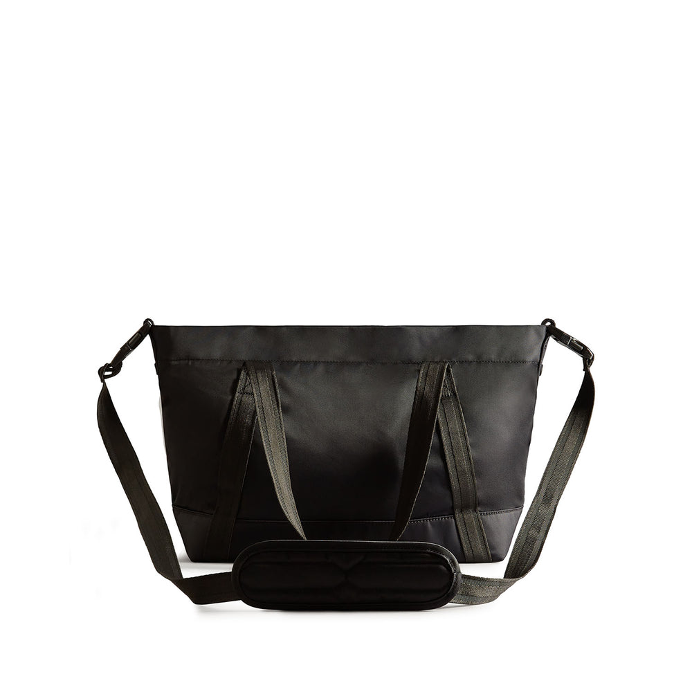 Met een voering van gerecycled polyester, een waterbestendige buitenkant en een verstevigde bodem, beschermt onze zwarte Original Midi Topclip Tote je spullen, ongeacht het weer. De tas heeft het ideale formaat voor een sporttas of boodschappen en heeft een afneembare, verstelbare riem, zodat je hem op verschillende manieren kunt dragen.